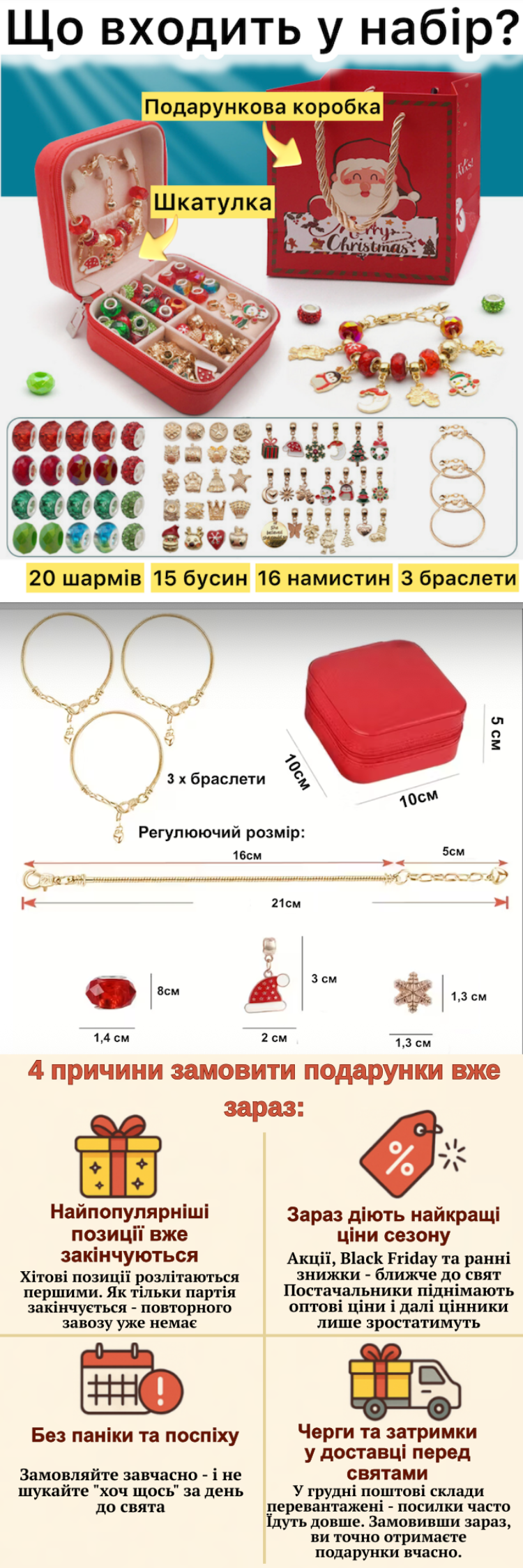 Набір для створення різдвяних браслетів DIY Christmas Bracelet Set — це чарівний комплект для тих, хто любить творчість, стиль і святкову атмосферу.